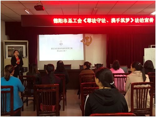 日上午,德阳市工会职工维权律师团秘书长、四川君唐律师事务所辜茜律师和周琪琪律师,到德阳市双东镇东美村开展“尊法守法
