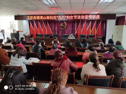为进一步增强妇女维权意识,让广大妇女学法、知法、守法,学会用法律的武器来维护自身的合法权益,在“三八”国际妇女节来临前,四川润坤律师事务所郭婷婷律师来到工农街道连山街社区开展“三八”妇女节法治宣传讲座,受到了妇女同胞的热烈欢迎。