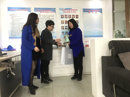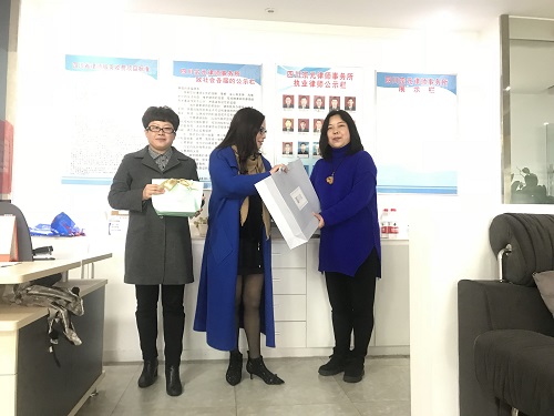 市律协副会长沈佳,省女工委委员、市律协常务理事陈英等走访了四川宗元律师事务所,对该所已55岁的潘律师进行关心和慰问,并送去节日礼品。