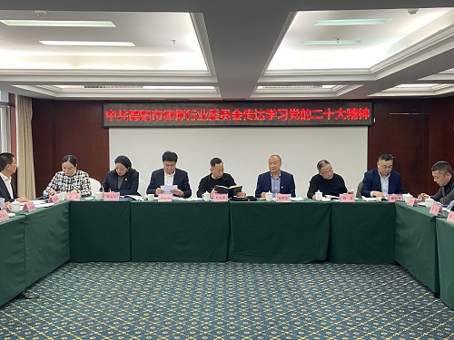 会议要求,要学深悟透省司法厅党委在学习宣传贯彻党的二十大精神通知上提出的“七个聚焦”和“五大行动”,坚持目标导向、问题导向、结果导向相统一。一是要进一步加强党对律师队伍的领导与管理。二是要立足行业优势,护航中心大局,为“拼经济、搞建设、抓发展”,实现德阳“重返前三”的目标作出贡献。三是广大律师要自觉肩负时代重任,勇担律师职责使命。