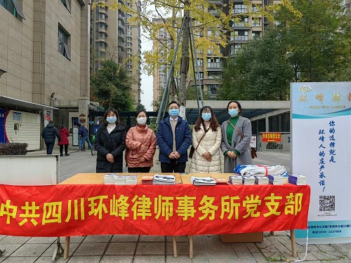 四川环峰律师事务所在“宪法宣传周”期间,走进企业、社区,为企业、职工进行法律培训,为小区居民进行法律宣传活动。支部书记文莉律师在培训中从法律位阶角度出发,讲解了宪法在治国理政中的重要地位和作用,提高企业及职工的宪法意识,依宪依法履职。律师文莉、江秀英、唐欧晨、李刚、张蕾,在山海天小区向小区居民发放法律宣传资料、宣传手袋等物品400余套,现场解答了小区业主提出的相关法律问题,为群众日常生活中遇到和关心的问题答疑解惑。