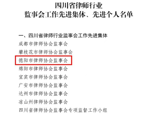 喜报!德阳律协监事会荣获省律师行业“先进集体”称号