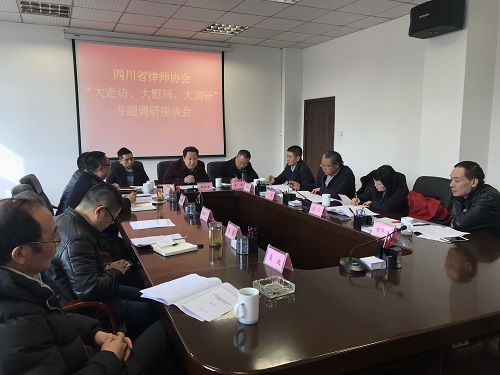 调研组一行先后深入四川三目律师事务所、四川君唐律师事务所、四川仁竞律师事务所开展调研。重点就律师行业党建、律师参与公益法律服务、精准法治扶贫、政府法律顾问工作以及青年律师的成长和发展等问题进行了详细的了解。