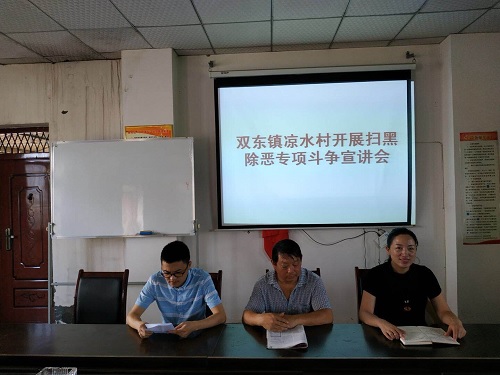 宣讲会上,首先传达了双东镇凉水村关于扫黑除恶专项斗争的会议精神和工作指示,号召大家要强力推进扫黑除恶的专项斗争,坚决清除关系网,打击保护伞,并针对村民们提出的问题,黄律师利用扫黑除恶专项斗争的相关知识对其进行了一一解答,并向村民们详细介绍了开展扫黑除恶专项斗争工作的目的、意义和打击重点。