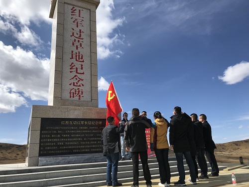 通过重温入党誓词、瞻仰红军过草地纪念碑等方式-----------缅怀先烈。